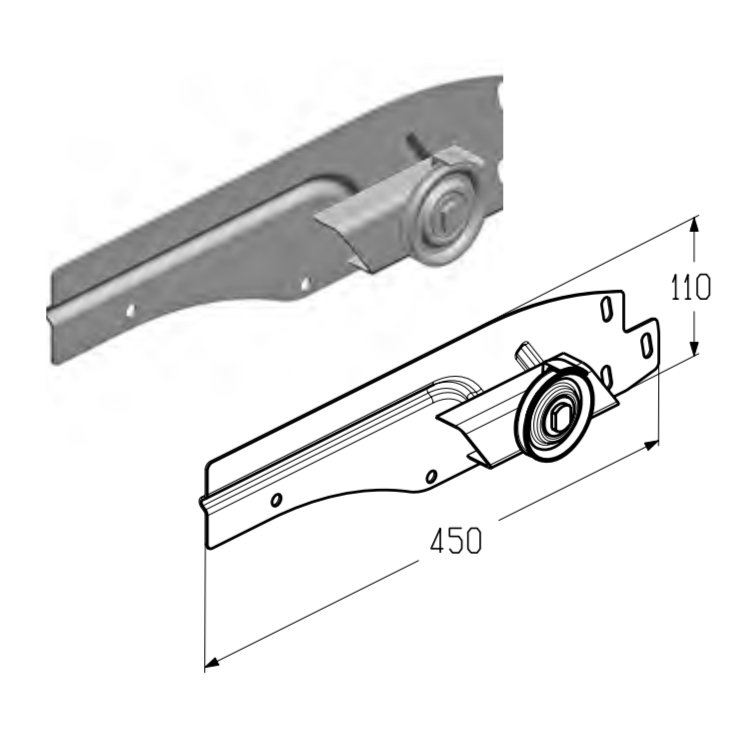 Используется в гаражных воротах с торсионными пружинами низкого типа монтажа.