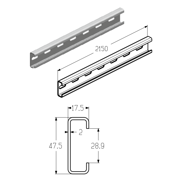 Перфорированный, предназначен для усиления телескопического подвеса. Устанавливается совместно с кронштейном подвеса (TB607-1500).