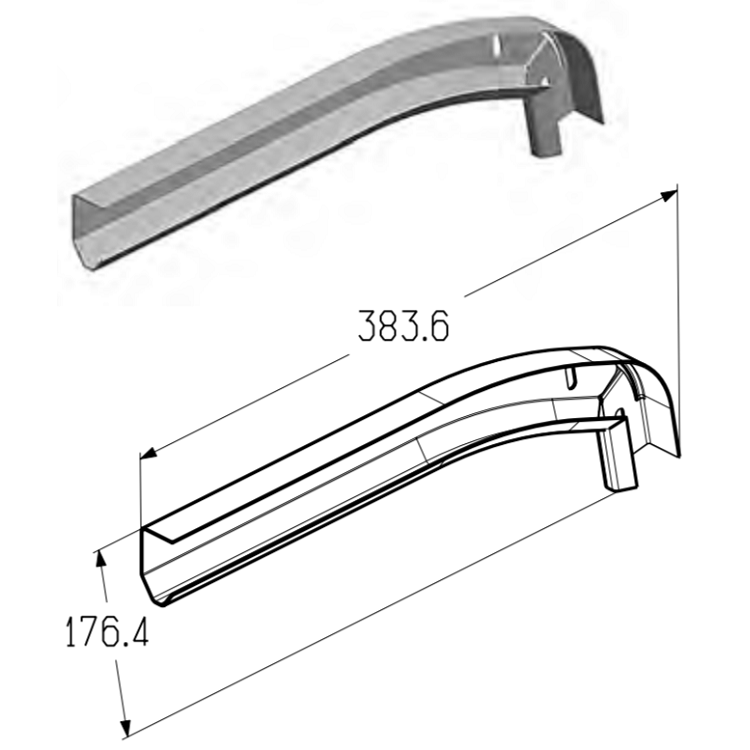 Предназначен для создания траектории движения верхней панели полотна ворот совместно с профилем направляющим (PRG-31, PRG-32).