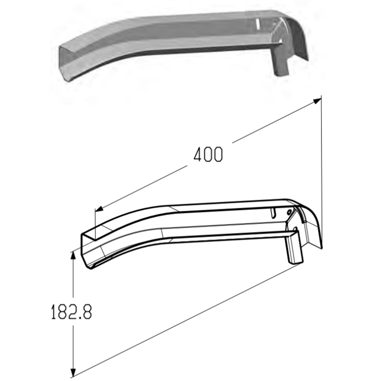 Предназначен для создания траектории движения верхней панели полотна ворот совместно с профилем направляющим (PRG-31, PRG-32).